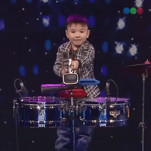 Un joven baterista demuestra su talento musical en el escenario de Got Talent Argentina, tocando con energía.