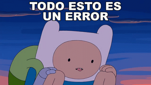 Finn from Adventure Time looks distressed with the text "Todo Esto Es Un Error" (All This Is A Mistake) above him.