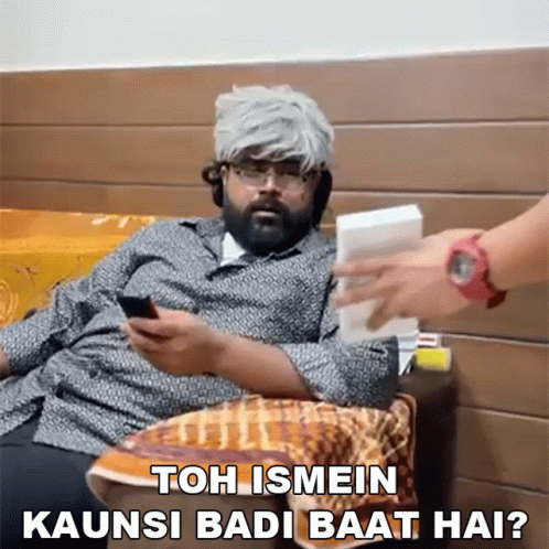 Javed as Master Ji reacts with the popular meme phrase 'Toh Ismein Kaunsi Badi Baat Hai?'.