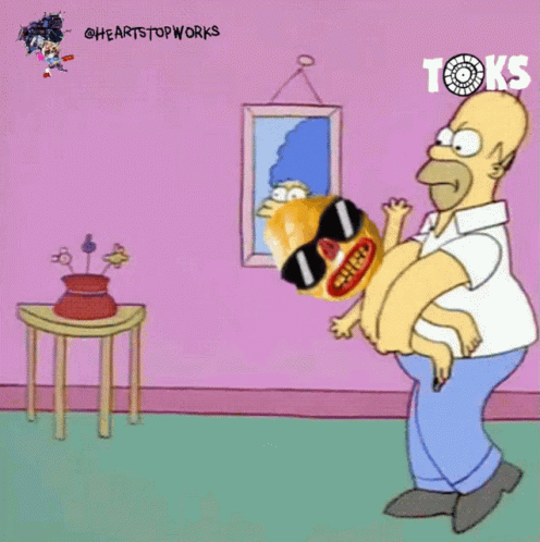 Homer Simpson carries a Baby Toks character, featuring Heartstopworkshop branding and text overlays.