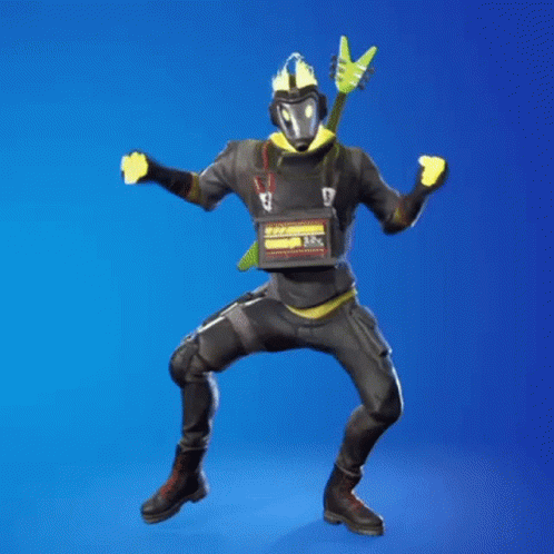 Tolfy Hotwire character performs an energetic Fortnite dance emote with a glowing car battery prop.