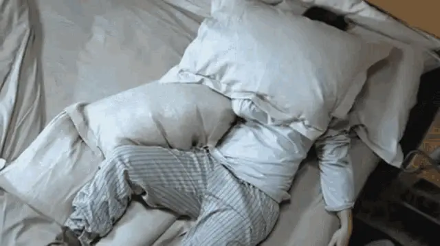 Tom the cat is visibly distressed by an alarm clock, while Jerry the mouse peeks out from his hole, annoyed.