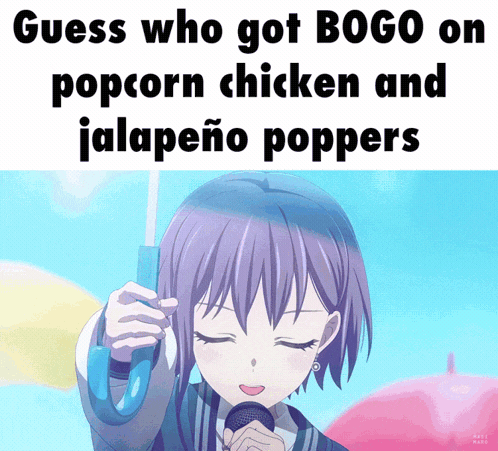 tomori takamatsu singing about popcorn chicken and jalapeno poppers
