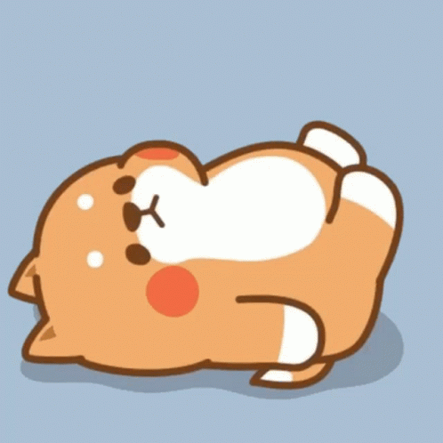 Tonton Friends character doing ab exercises, lying on its back on the floor.