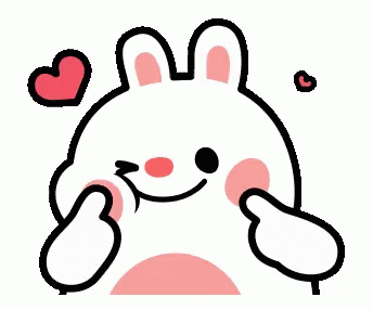 Tonton Tobi, a cute white rabbit character, blushes with pink cheeks and hearts.