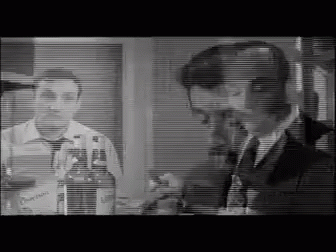 Lino Ventura and Bernard Blier in a classic scene from the French film Les Tontons Flingeurs.