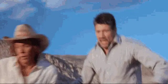 Tony Genaro, wearing a cowboy hat and black vest, is featured. Miguel Sanchez is also present in this scene.