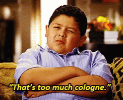 Manny from Modern Family reacts to a strong scent, exclaiming 'That's too much cologne.'