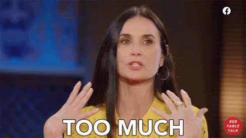 Demi Moore expresses 'Too Much' with hand gestures during an episode of Red Table Talk, wearing a yellow top.