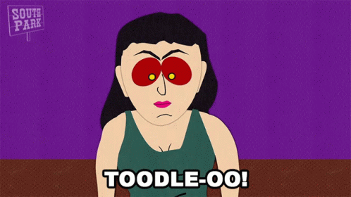 South Park character Veronica says 'Toodleoo' and waves goodbye.