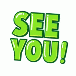 Animated sticker featuring bright green 'SEE YOU!' text and a cheerful cartoon character waving goodbye.