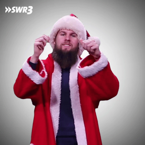 Dominik, dressed as Santa Claus, gives two enthusiastic thumbs up for SWR3.