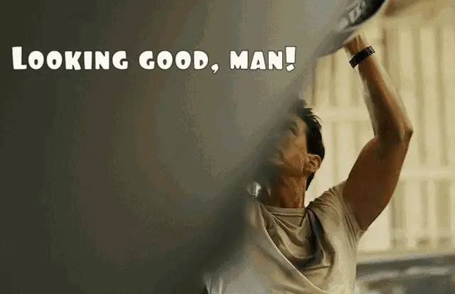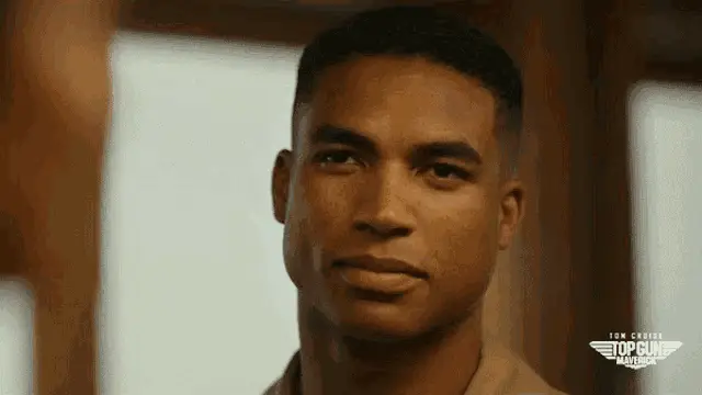 Tom Cruise as Maverick, smiling and riding a motorcycle on an airfield in Top Gun Maverick.