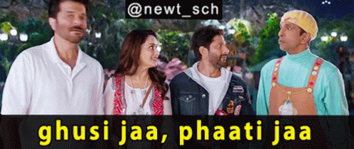 Javed Jaffrey, Anil Kapoor, Madhuri Dixit, and Arshad Warsi in a memorable scene from Total Dhamaal.