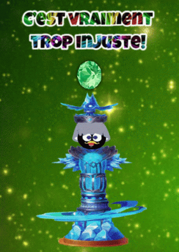 A cartoon character on a sparkling totem pole with the French phrase 'C'est Vraiment Trop Injuste!' (It's truly too unfair!)