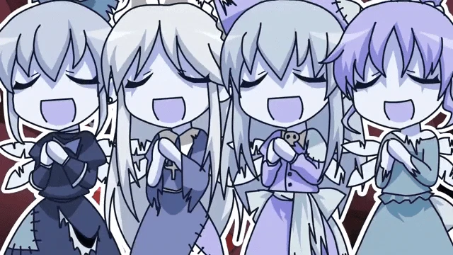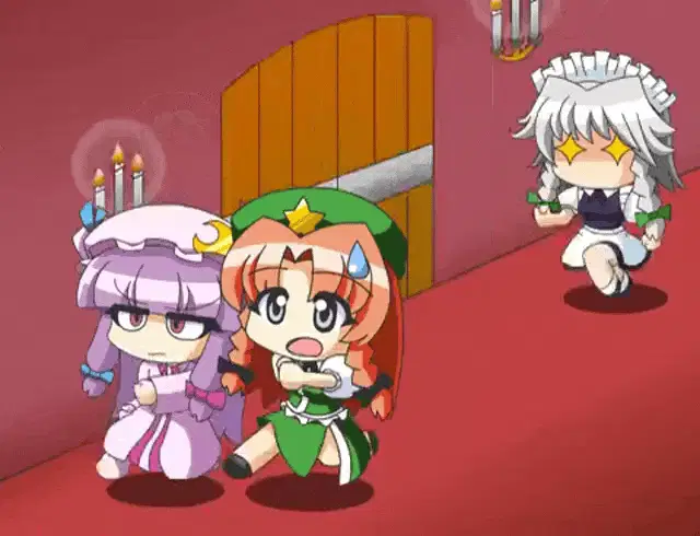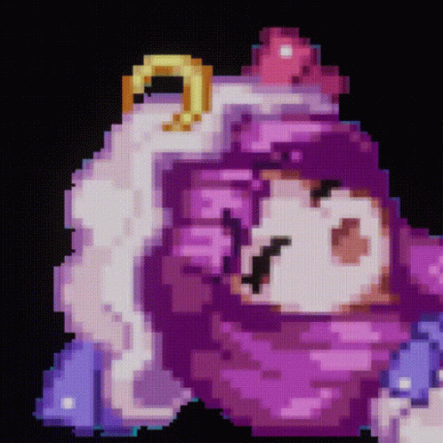 Pixel art animation of Touhou character Patchouli, featuring a purple figure with a golden halo.