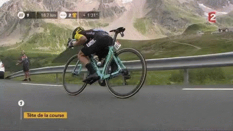 A cyclist speeds down a winding mountain road during the iconic Tour De France race.