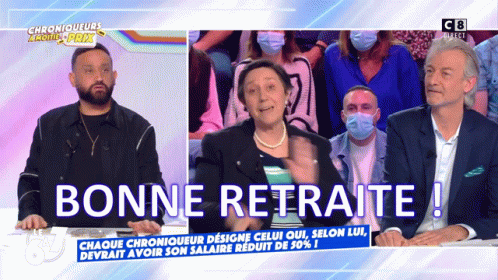 Cyril Hanouna and Danielle Moreau on TPMP, discussing 'Bonne Retraite' and salary reductions.
