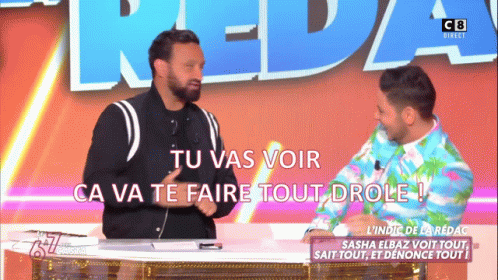 Cyril Hanouna and Sasha Elbaz on TPMP 6a7, with the phrase 'Tu Vas Voir Ça Va Te Faire Tout Drôle' displayed.