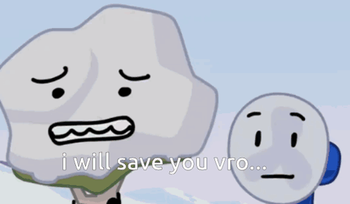 Tree and Fanny from BFDI in a heartwarming moment, with Tree saying 'I will save you vro...'