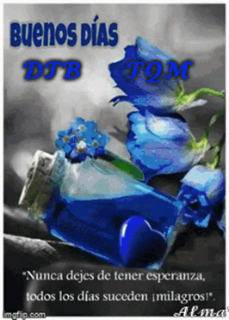 A beautiful pink rose slowly blooming, accompanied by the cheerful Spanish greeting 'Good morning!'