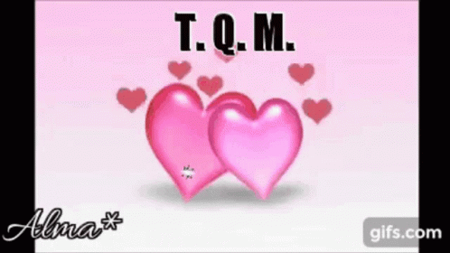 Two pink hearts with 'T.Q.M.' and 'Alma*' text, symbolizing love and affection.