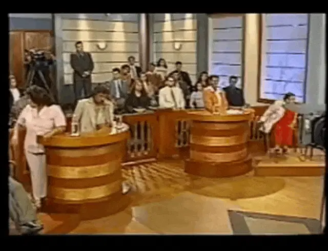 A woman with an intense, dramatic expression and dark lipstick, looking directly at the camera.