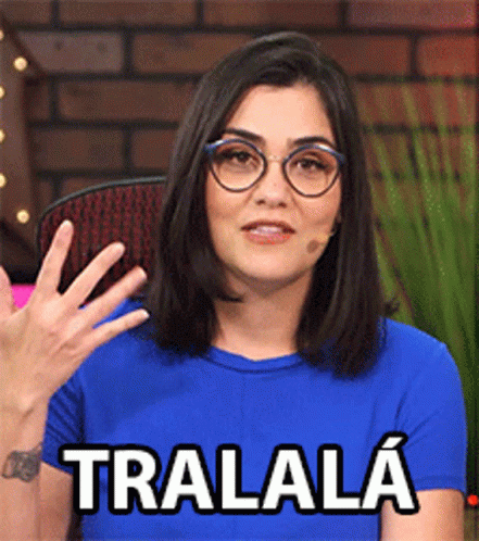 Tati Martins gestures while speaking, with the word 'TRALALÁ' displayed on screen.