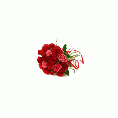 Vibrant bouquet of red and pink roses tied with a festive red ribbon, perfect for a special occasion.