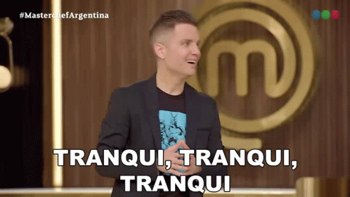 Santiago Del Moro calms the audience with "Tranqui, tranqui, tranqui" on Masterchef Argentina.