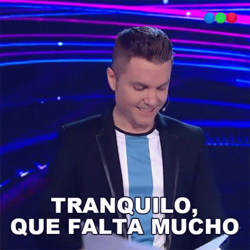 Santiago Del Moro, wearing an Argentina jersey, delivers the phrase 'Tranquilo Que Falta Mucho' on the set of Gran Hermano.