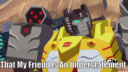 Grimlock from Transformers Cyberverse delivers the iconic line, 'That My Friend Is An Understatement'.
