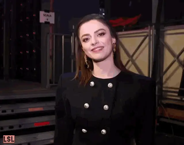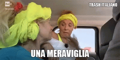 Patrizia Rossetti reacts with 'Una Meraviglia' on Pechino Express, covering her face in laughter.