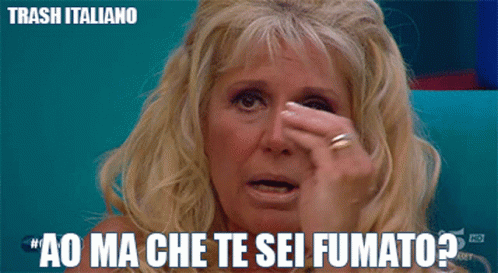 Maria Teresa Ruta reacts with 'Hey, what did you smoke?' in a moment from Trash Italiano, covering her mouth.