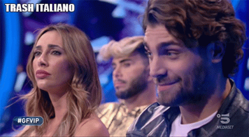 Mario Ermito reacts during a segment of Trashitaliano, likely related to Grande Fratello Vip.
