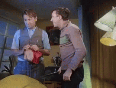 Two men discuss training, with one suggesting to 'train better... on cats,' followed by a man training.