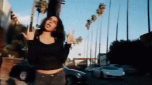 Treyreloaded poses on a sunny street lined with palm trees, making a rock-on hand gesture.