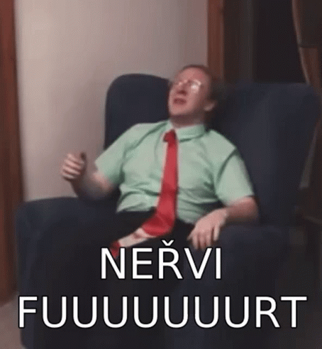Stepan Kozub from Tri Tygri reacts with 'Nervi Fuuuuurt' while sitting in a chair.