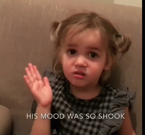 A little girl makes a funny, annoyed face and waves her hand, asking "He such a baby is he two?"