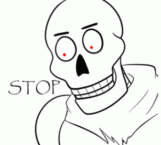 A triggered skeleton with red eyes and googly eyes demands 'Stop It' in this animated clip.