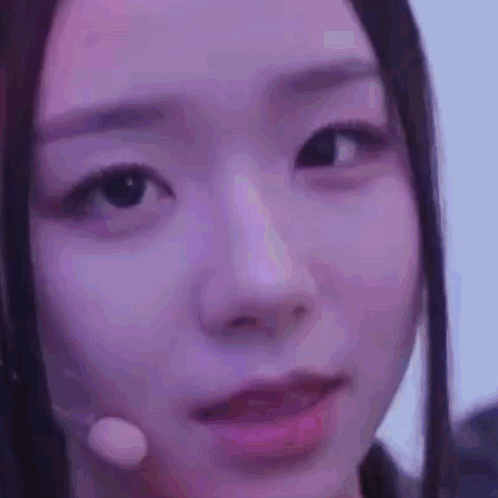 K-pop idol tripleS Chaeyeon gives a cute and devious side eye, wearing a microphone during a performance.