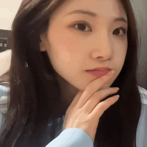 Kim Nakyoung from Triples waves and smiles charmingly at the camera in a close-up, showcasing her cute expression.