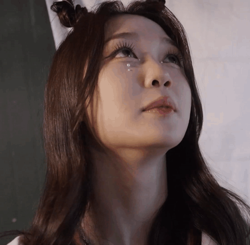 Triples Yubin's close-up shot, showcasing her unique hair styled into cute horns and glitter makeup.