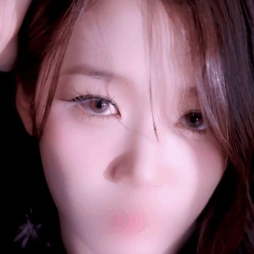 Triples Yubin's cute close-up, featuring her soft gaze and blurry lips against a purple background.