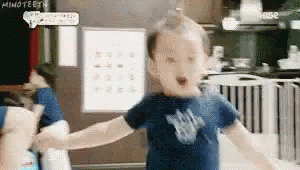 Adorable child in a blue shirt makes a cute kissing face, blowing a kiss towards the camera.