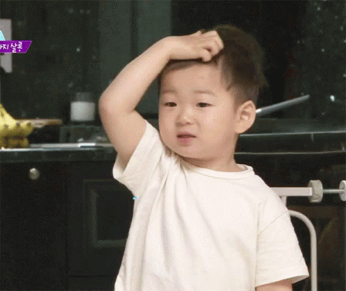 Song Dae Han, one of the Korean triplets, scratches his head looking curious, with Korean text '궁금'.