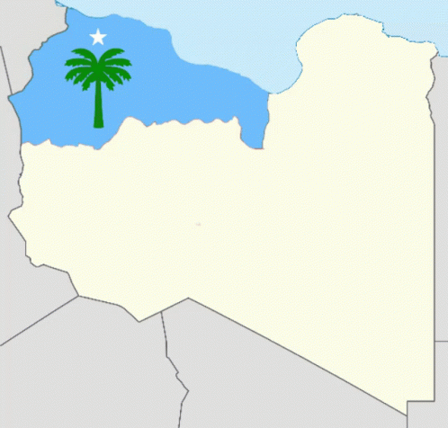 Map of Libya showing the region associated with the Tripoli Emirate of Cyrenaica, featuring its historical flag.