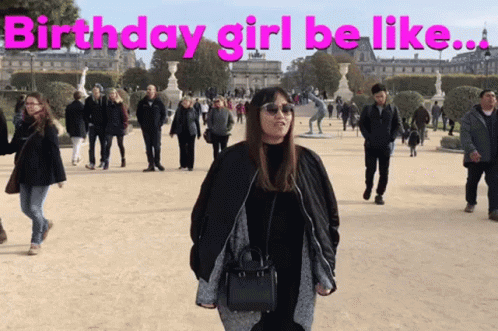 Trisha Nova Tarisha, the birthday girl, walks confidently through a bustling park, embodying celebratory vibes.