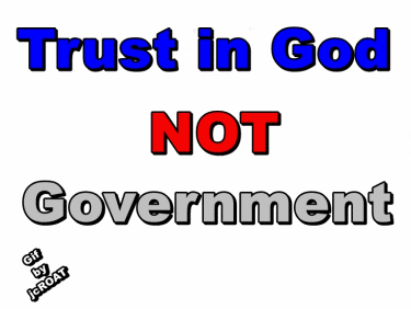 A bold message advocating to trust in God, not the government, with a small credit to jCROAT.