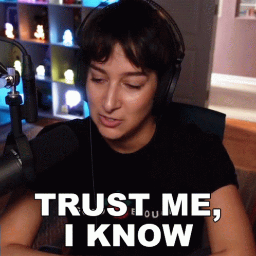 Alli Speed, wearing headphones, confidently states 'Trust me, I know' to the camera.
